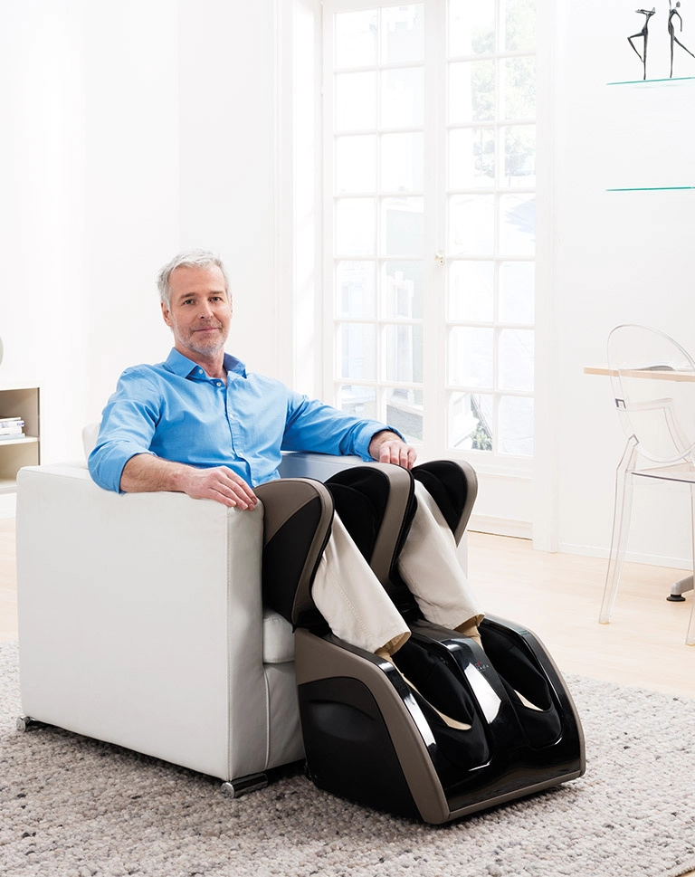 | Верхняя часть Canoo 5 раскрывается до 110 градусов. Вы можете выбрать между массажем бёдер или верхней части икр и коленей. | |