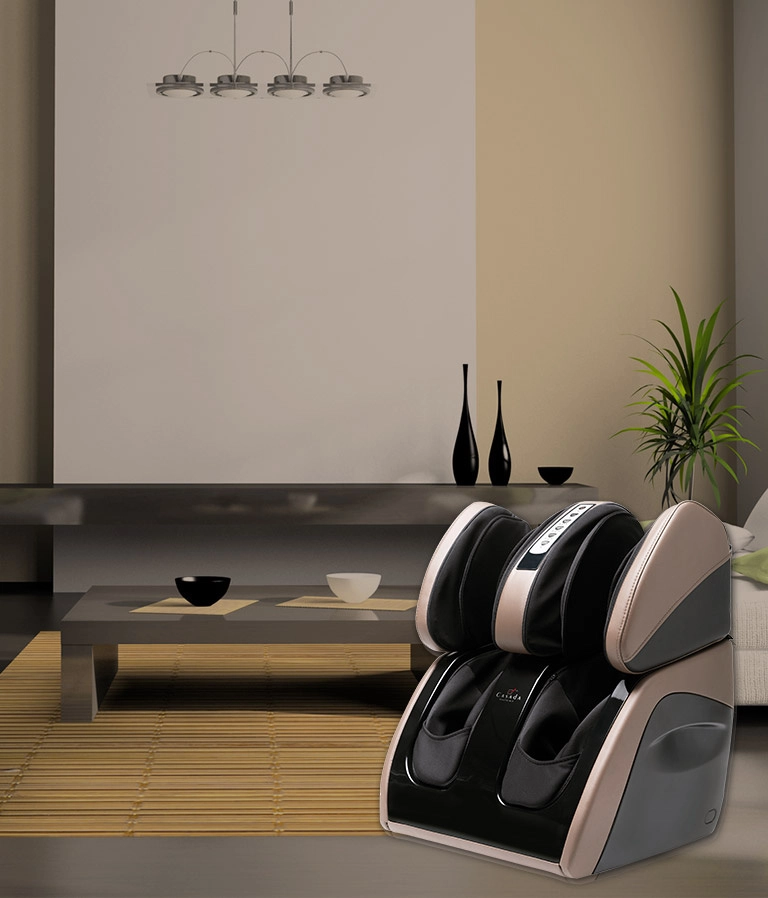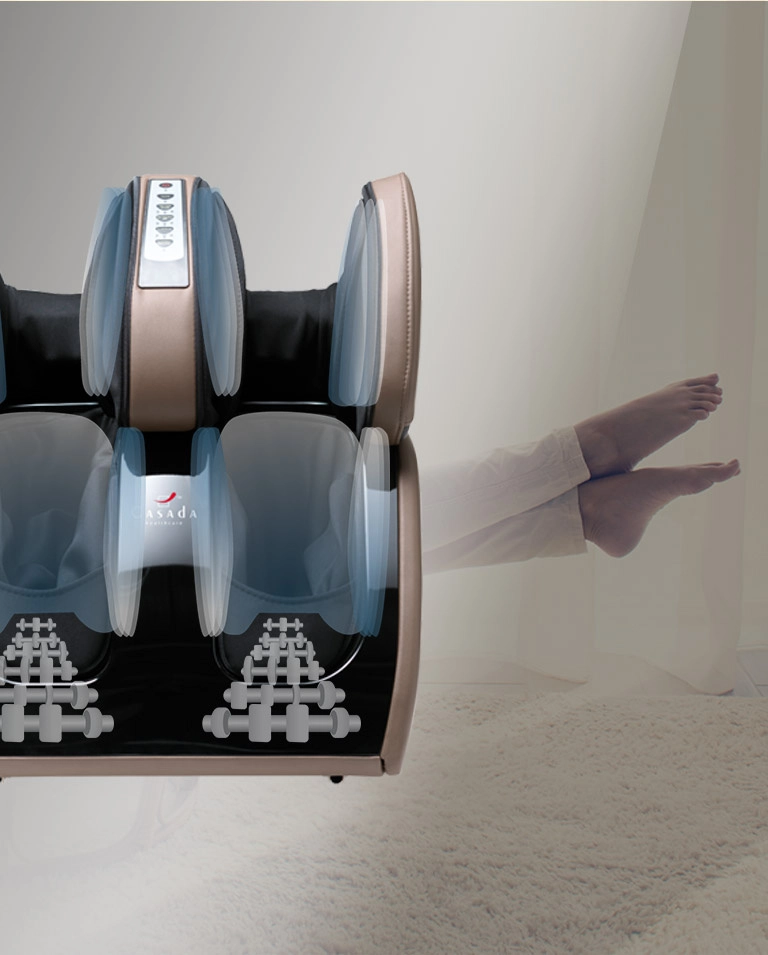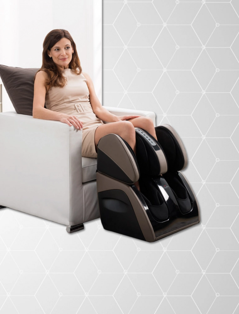 | Массажные подушки разминают ноги снизу вверх (от стоп к бёдрам). Такая техника помогает движению лимфы и уже через 2-3 минуты вы будете чувствовать лёгкость в ногах. | |